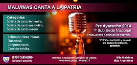 Está abierta la inscripción para el festival Pre Ayacucho 2014 “Malvinas Canta a la Patria” que se realizará en ese distrito.